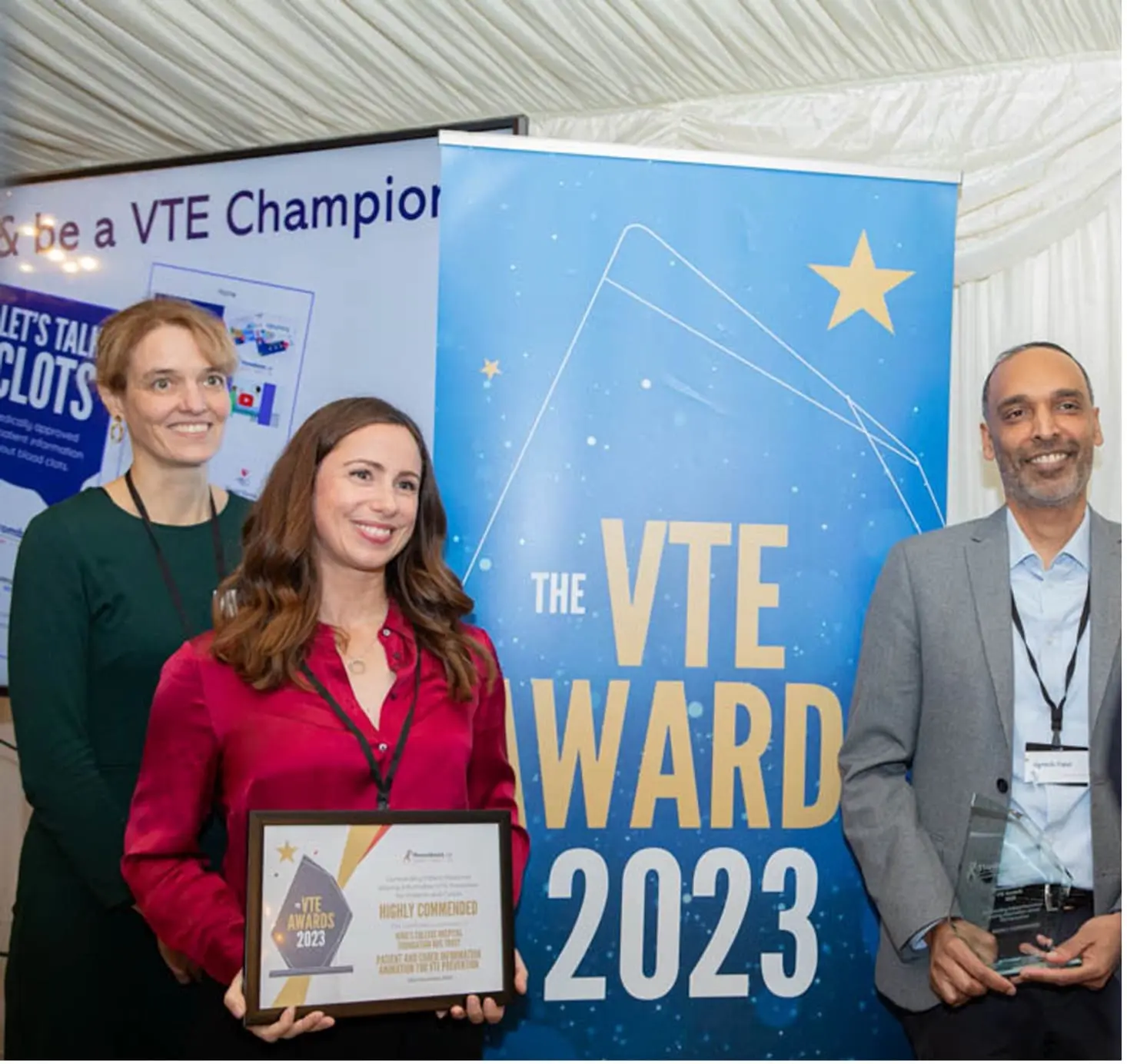 This award recognised work undertaken by an individual or team to address gaps in patient information on the prevention of blood clots and the importance of seeking help if a blood clot is suspected.
