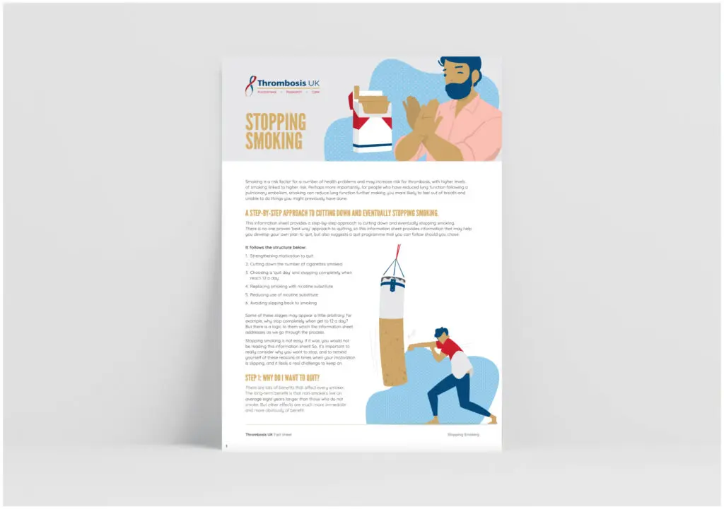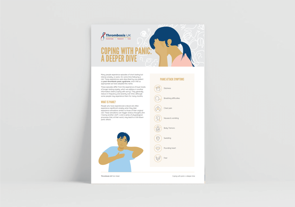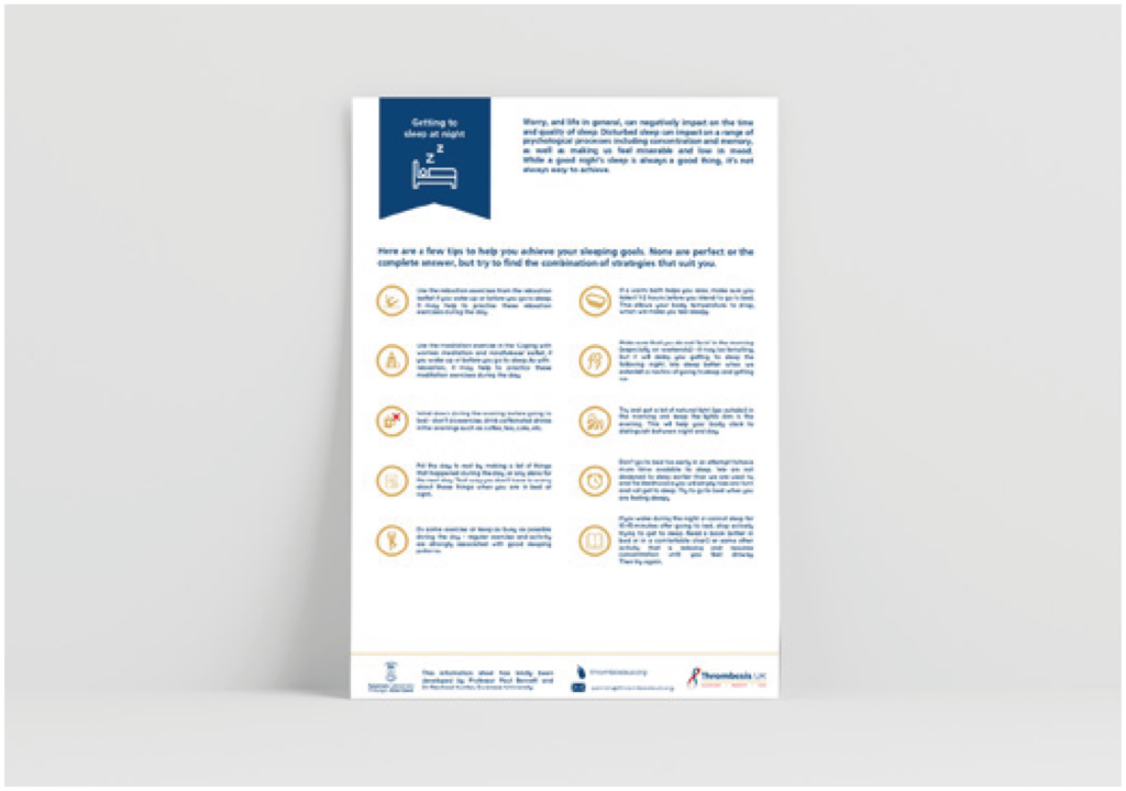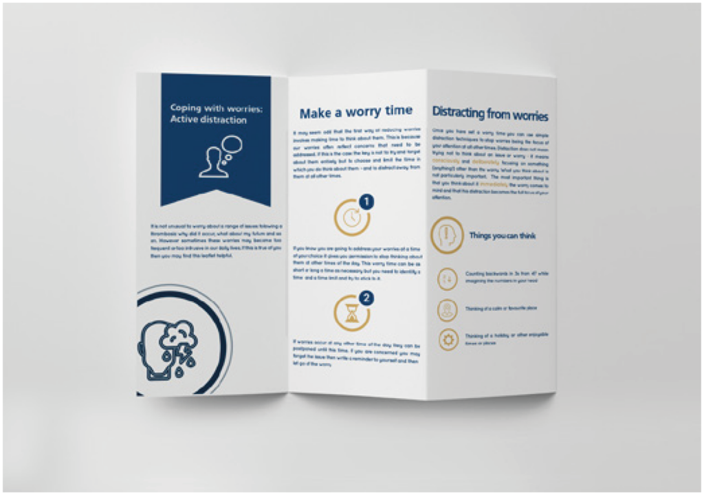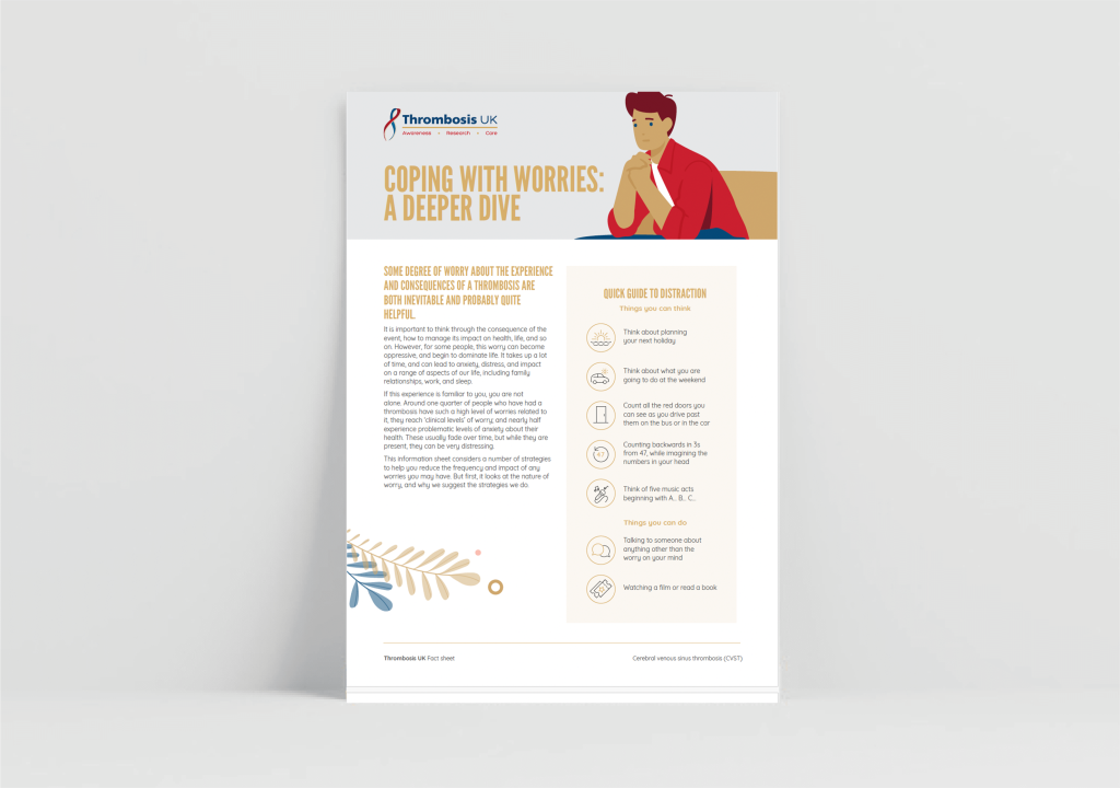The following information aids have been prepared by Professor Paul Bennett, clinical psychologist and Lead of Thrombosis UK’s ‘Regain’ programme, and Dr Rachael Hunter, clinical psychologist: both from Swansea University. They are provided as tools for help and reassurance. However, it is always important to speak to your own healthcare professional to discuss your own specific and individual concerns or questions.