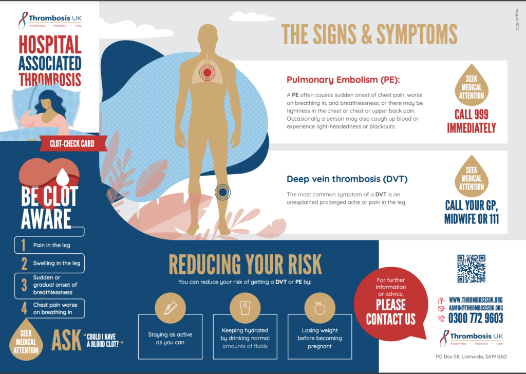 Individuals can access these on the ‘Patient Information’ section of this website and via the ‘Let’s Talk Clots’ patient information app. All resources can be viewed and downloaded free of charge.