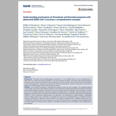 NIHR: Understanding mechanisms of thrombosis and thrombocytopenia with adenoviral SARS-CoV-2 vaccines: a comprehensive synopsis